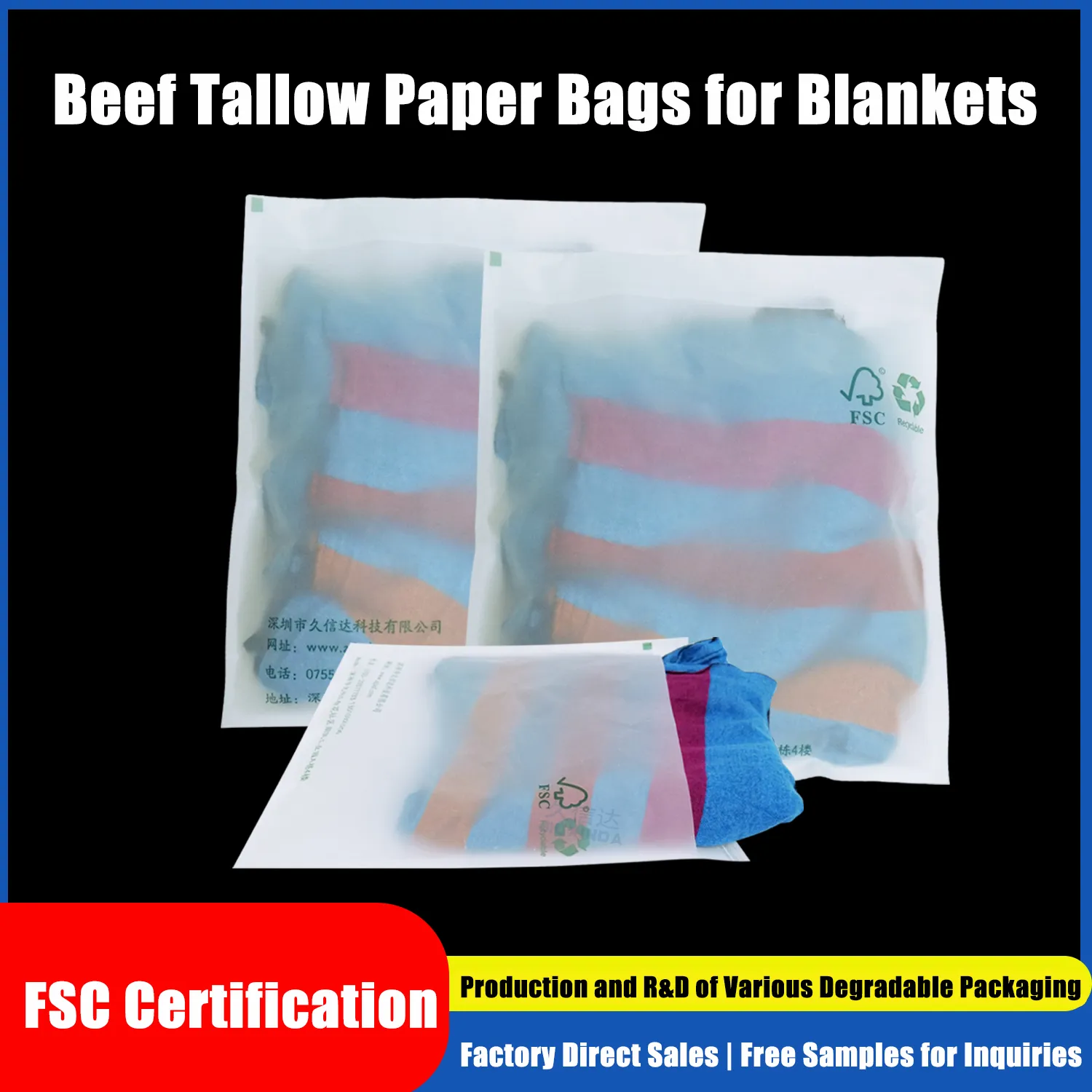 Special butter paper bags for blankets, tear-resistant and not easy to break, easily keeping blankets clean and flat. Supports size and pattern customization, suitable for foreign trade export standards!