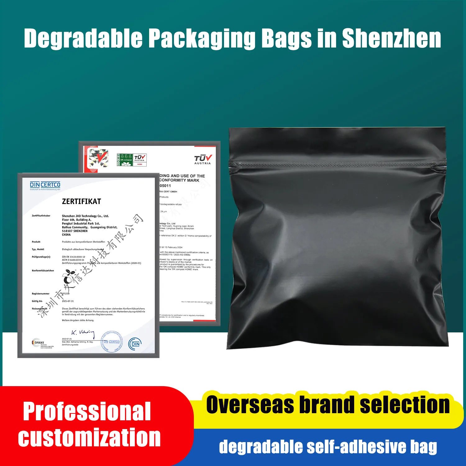 | Environmental protection certification: | Biodegradable, compostable. |
